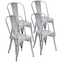 Devoko Metal Indoor-Outdoor Chairs Distressed Style Kitchen Dining Chairs Stackable Side Chairs With Back Set Of 4 (Silver)