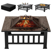 Devoko 32 Inch Square Fir Pit Has Modern Feature Design, Which Can Warm And Decorate Your House, Is Suitable For Your Patio, Backyard, And Poolside. You Can Use It As A Fire Pit, Bbq Grill, Outdoor Ice Bucket Or Just A Large Table, Just Enjoy Your Leisure Outdoor Life With This Durable Firpit.Features:-Modern Pattern Design Makes The Fire Pit Suit For Patio, Backyard, And Poolside.-Multifunctional Firepit Can Be Used As A Fire Pit, Bbq Grill, Outdoor Ice Bucket Or Just A Large Table.-This Fire Pit Is Constructed Of Heavy Duty Steel Frame, Which Is Durable And Solid.-The Firepit Features Square Design With Four Firm Legs Make It More Stable, Even On Uneven Ground.-Treated With High Temperature Coating, Makes It Rust Resistant For Long Time Outdoor Using.-Equipped With A Mesh Spark Lid To Prevent Sparks And Ashes From Flying Everywhere, And The Poker Allows You To Safely Move The Grill And Burning Wood.-Comes With A Waterproof Outer Cover To Keep The Firpit Clean When Not Use Outdoor.-This Fire Pit Table Is Design To Assemble Easily, Comes With Step-By-Step Installation And All The Tools.-The Bottom Of The Brazier Is Provided With Drain Holes For Easy Draining Water And Cleaning.Specification:Material: Ironcolor: Blackoverall Dimension (Without Lid): 31.97 X 31.97X 14.4 (Lxwxh)Fire Brazier Dimension: 20 X 20Weight: 30 Lbsnotes: For Safety, Please Use This Fire Pit Outdoors.