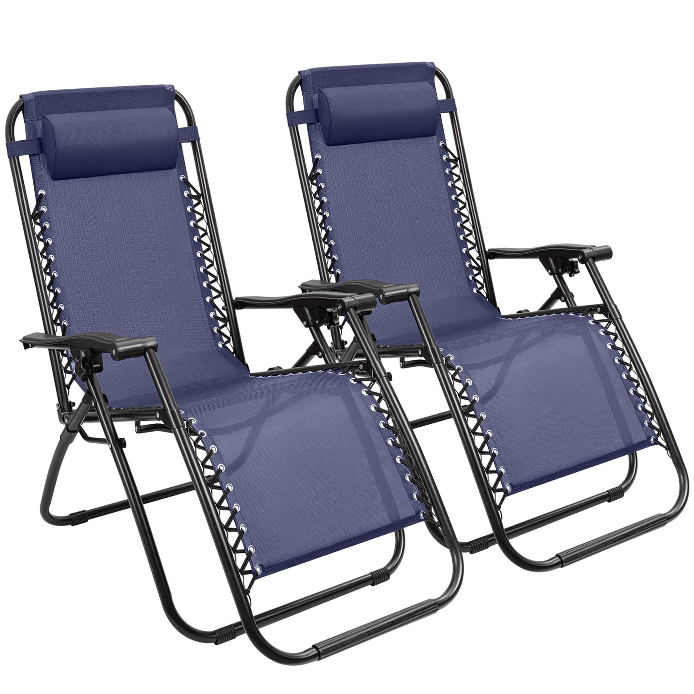 Devoko Patio Zero Gravity Chair Outdoor Folding Adjustable Reclining Chairs Pool Side Using Lawn Lounge Chair With Pillow Set Of 2 (Dark Blue)