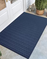 Dexi Front Door Mat Outdoor Entrance Doormat Heavy Duty Floor Rug, Waterproof Low-Profile, 35'X59', Wave Navy