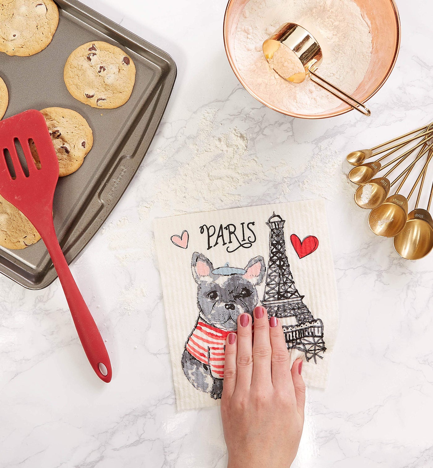 Dii Swedish Dishcloths For Kitchen & Cleaning, Reusable, Machine Washable & Dishwasher Safe, Biodegradable, 7.75 X 6.75, Dog In