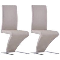 vidaXL Dining Chairs with Zigzag Shape 2 pcs Cappuccino Faux Leather - 282084, This set of exquisite dining chairs will bring an ultra modern look to your dining room or kitchen. It features an exclusive contemporary design with its bold sharp lines and curves. Its durable construction will ensure you many years of service. In addition, the unique zigzag shape will make the point of focus in your dining hall. The chair also has an ergonomically shaped seat and backrest which guarantees your sitting comfort. Delivery includes a set of 2 dining chairs.