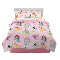Bring Some Disney Magic To Bedtime With This Fun And Fashionable Bedding Set. Featuring All Of Her Favorite Disney Princesses In An 'Always Inspire' Pattern, This High-Quality Bedding Set Is Sure To Be A Dream Come True In Any Disney Fans Bedroom.The Soft Microfiber Set Includes A Comforter, Fitted Sheet, Flat Sheet, Pillowcase(S), And Pillow Sham(S). For Fun And Versatility, One Side Of The Reversible Comforter Features Belle, Cinderella, Mulan, Rapunzel And Ariel Against A Light Pink Backdrop, While The Flipside Features Even More Disney Princesses In An All-Over Pattern With A Darker Pink Backdrop. Coordinating Colors And Imagery On The Princess Themed Sheets, Pillowcase(S) And Pillow Sham(S) Help Create A Cohesive Disney Look.Disney Princesses Continue To Inspire And Entertain Fans Of All Ages With Their Strength, Intelligence, Humor And Creativity. Now Kids Can Bring The Fun Home With This Soft And Stylish Bedding Set Featuring Many Of Their Favorite Disney Characters.Set Is Available In A Twin Size 5 Piece Bedding Set Or A Full Size 7 Piece Bedding Set.
