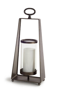 Candleholder 18'H Metal/GlassFeaturesInspired by antique carriage lanternsPedestal candle holder and glass hurricaneSet of 2Metal/GlassCandle sold separately Color: Brown, BlackMaterial: Metal, GlassProduct Size: 7.5 x 4.5 x 18Made In China