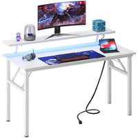 Dlandhome Computer Desk 47 With Led Lights & Power Outlets,Folding Desk With Monitor Stand, Writing Desk Home Office Desk, Fully