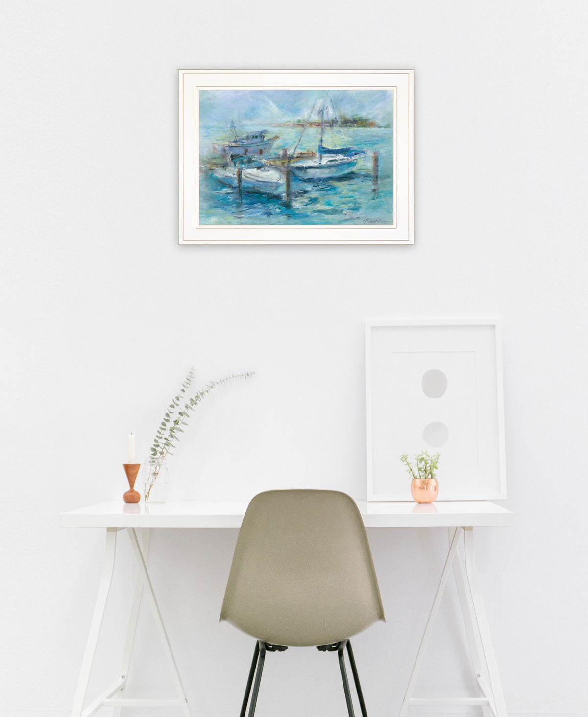 This dockside 2 white framed print wall art will add a beautiful decorative accent to your decor. This print is a visual artistic expression that allows you to decorate your space in reproduced for you on style. This hanging decorative accent will be a trendy and fashionable way to dress your walls. Hang on your wall to add some up to date fashion and decoration. Instantly liven up your space with this art that brings color and dimension to your wall. 'W x 1' D