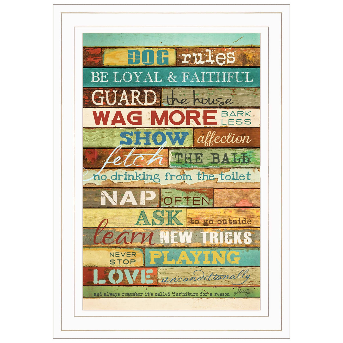 This dog rules 2 white framed print wall art will add a beautiful decorative accent to your decor. This print is a visual artistic expression that allows you to decorate your space in Reproduced for you on style. This hanging decorative accent will be a trendy and fashionable way to dress your walls. Hang on your wall to add some up to date fashion and Utilize this opportunity to create a focal point in the room with this wonderful wall decor option. x 15' W x 1' D