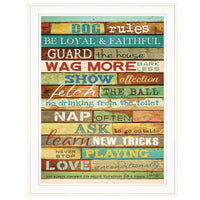 Add an air of fashion to your room and rejuvenate the space with this dog rules 5 white framed print wall art. This print is a visual artistic expression that allows you to decorate your space in style. Reproduced for you on paper, this hanging decorative accent will be a trendy and fashionable way to dress your walls. Hang on your wall to add some up to date fashion and decoration. Utilize this opportunity to create a focal point in the room with this wonderful wall with this wonderful wall decor option. 23. 'H x 19' W x 1' D