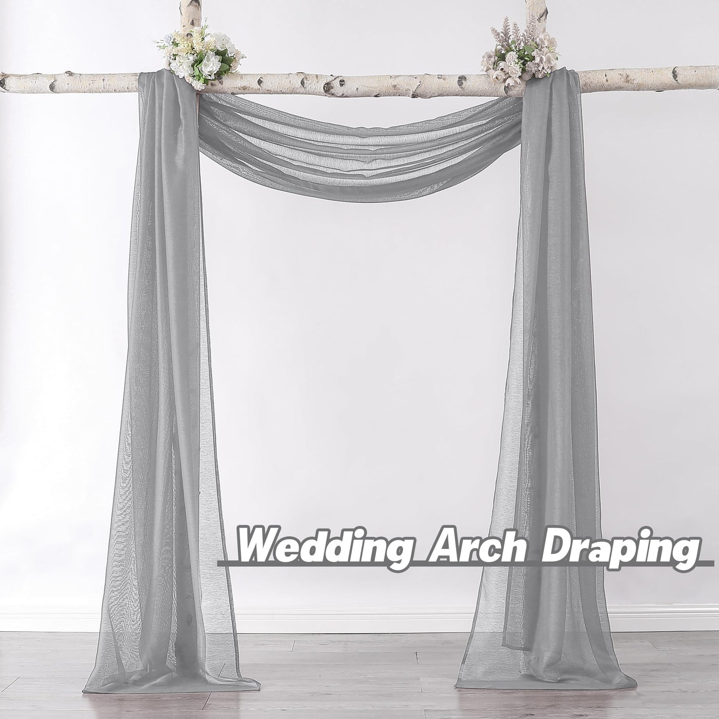 Donren 144 Inches Long Window Scarf Valances For Party - Luxury Soft Gray Semi Sheer Curtain Scarf For Window,1 Panel (Gray,1 Pa