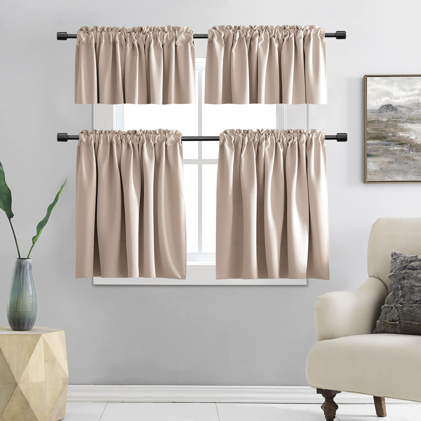 Donren 2 Pack Blackout Window Valances For Basement With Rod Pocket -16 Inches Long Valances For Windows(Warm Taupe,52 Inches Wi