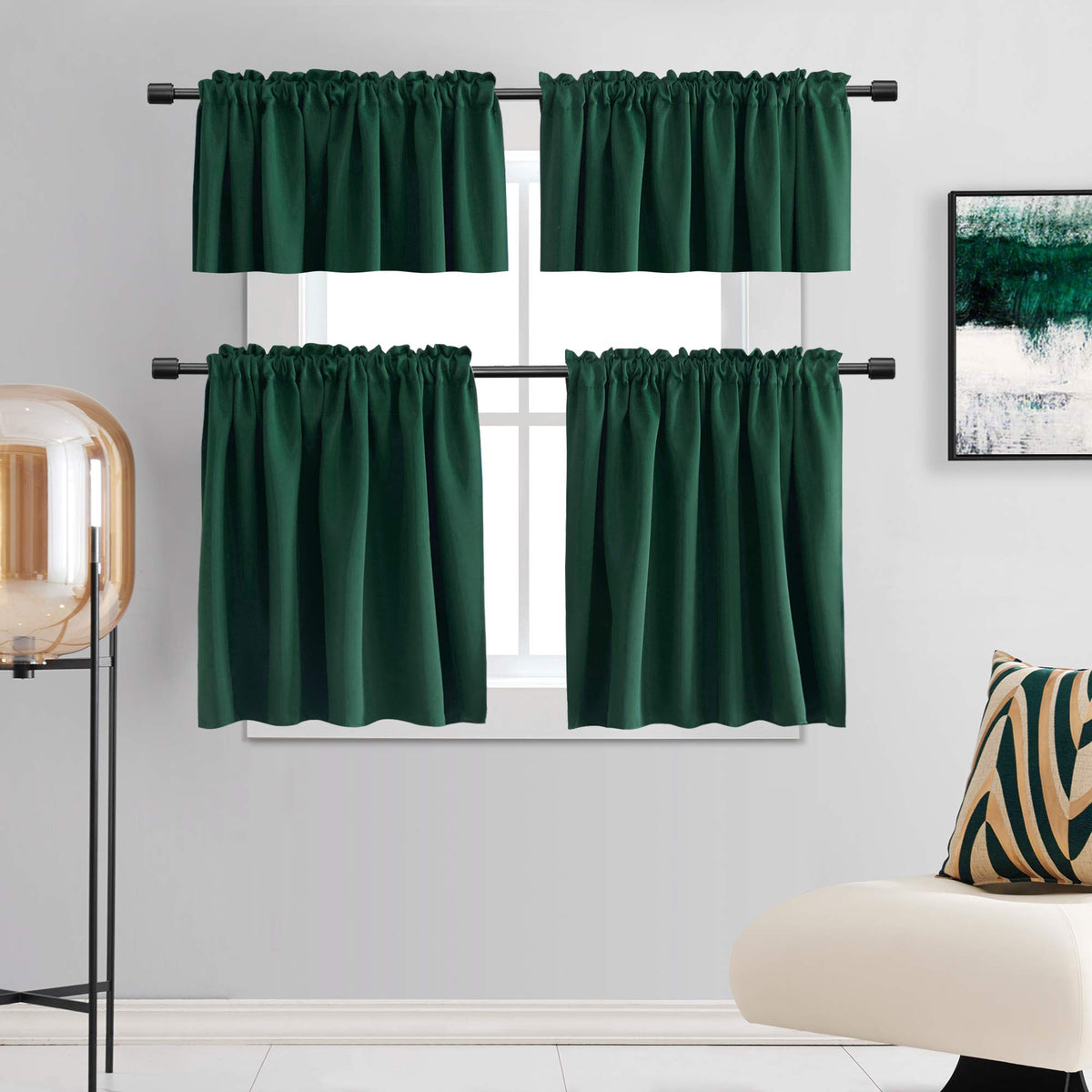 Donren 2 Panels -16 Inch Length Dark Hunter Green Blackout Valances For Windows - Bedroom Small Window Valances For Home Decorat