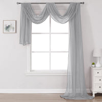 Donren 288 Inch Length Window Scarf - Extra Long Grey Background Scarf Curtain - Soft Voile Textured Window Topper Curtain Valan