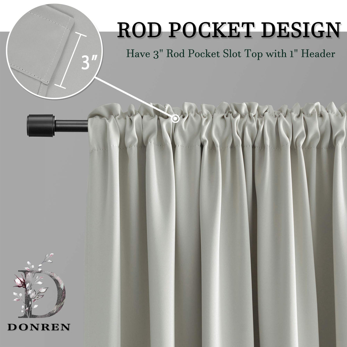 Donren 36 Inch Length Curtain Tiers For Loft - Light Gray Blackout Short Length Curtains For Bathroom(52 Inches Wide,2 Panels)