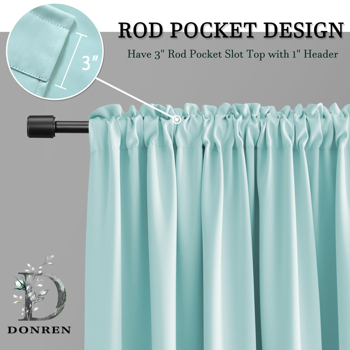 Donren 48 Inch Curtains For Boy'S Room - Room Darkening Thermal Insulated Window Drapes With Rod Pocket For Short Windows (2 Panels,52 X 48 Inch,Aqua)
