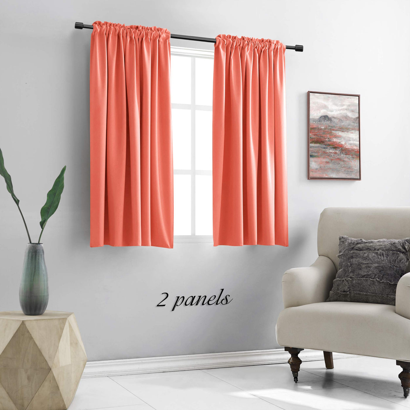Donren 48 Inch Length Coral Blackout Curtains For Bedroom - Small Window Treatment Rod Pocket Curtain Drapes (Set Of 2 Panels,52 W X 48 L)