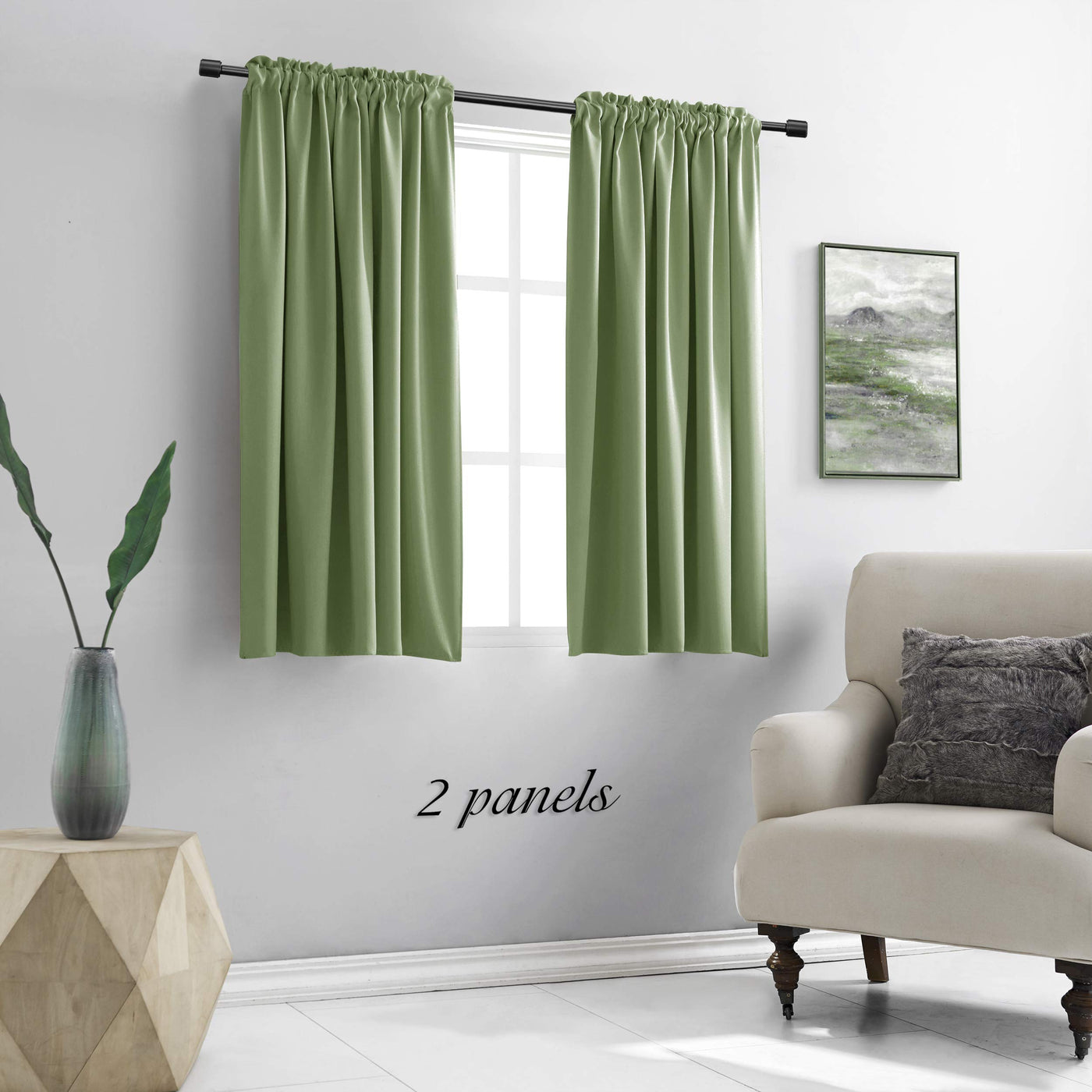 Donren 48 Inch Length Sage Blackout Curtains For Bedroom - Small Window Treatment Rod Pocket Curtain Drapes (Set Of 2 Panels,52 W X 48 L)