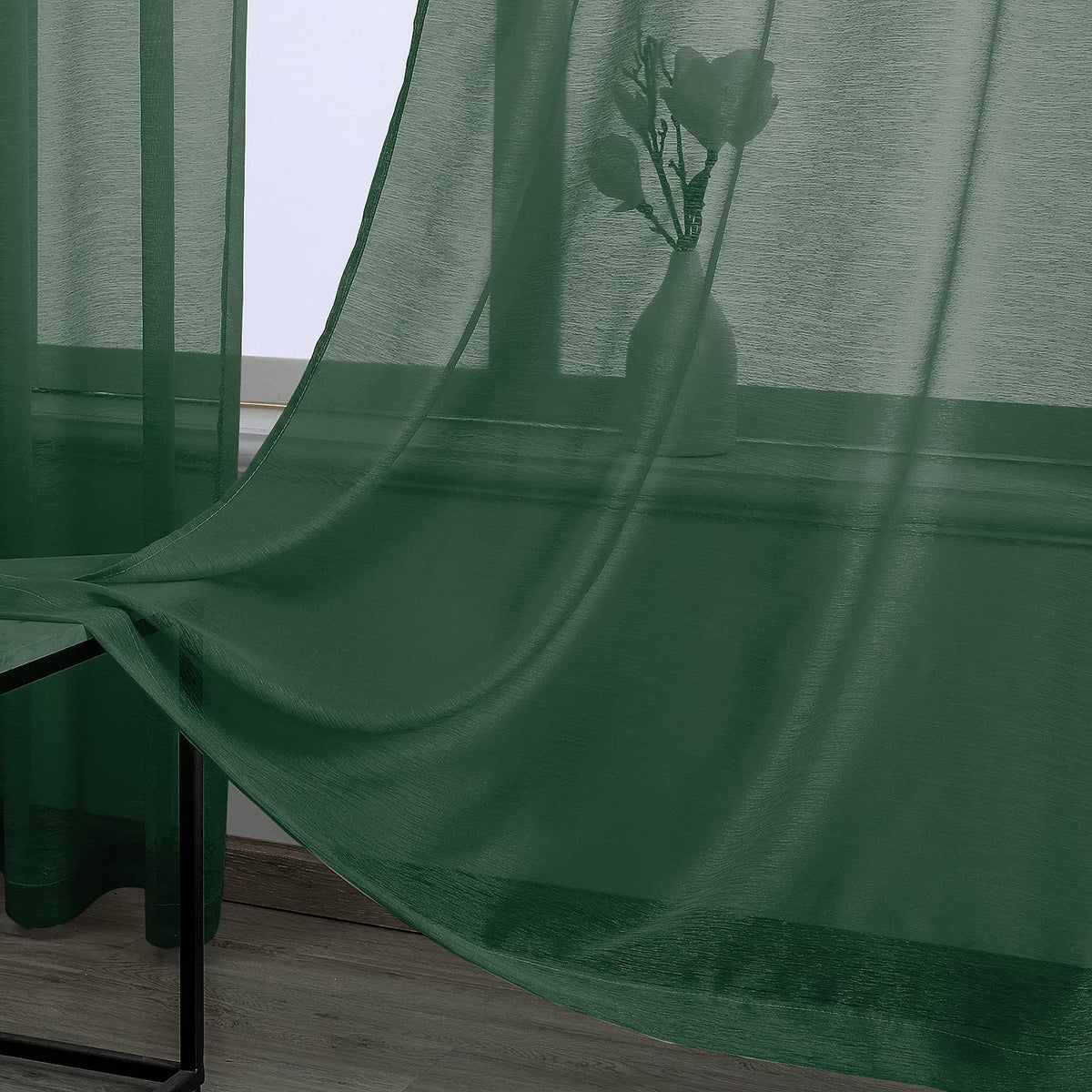 Donren 96 Inch Length Patio Door Sheer Curtain Panels - Ceiling To Floor Extra Long Voile Drape Curtains Window Treatment For Sliding Glass Door(Dark Green,2 Pieces)