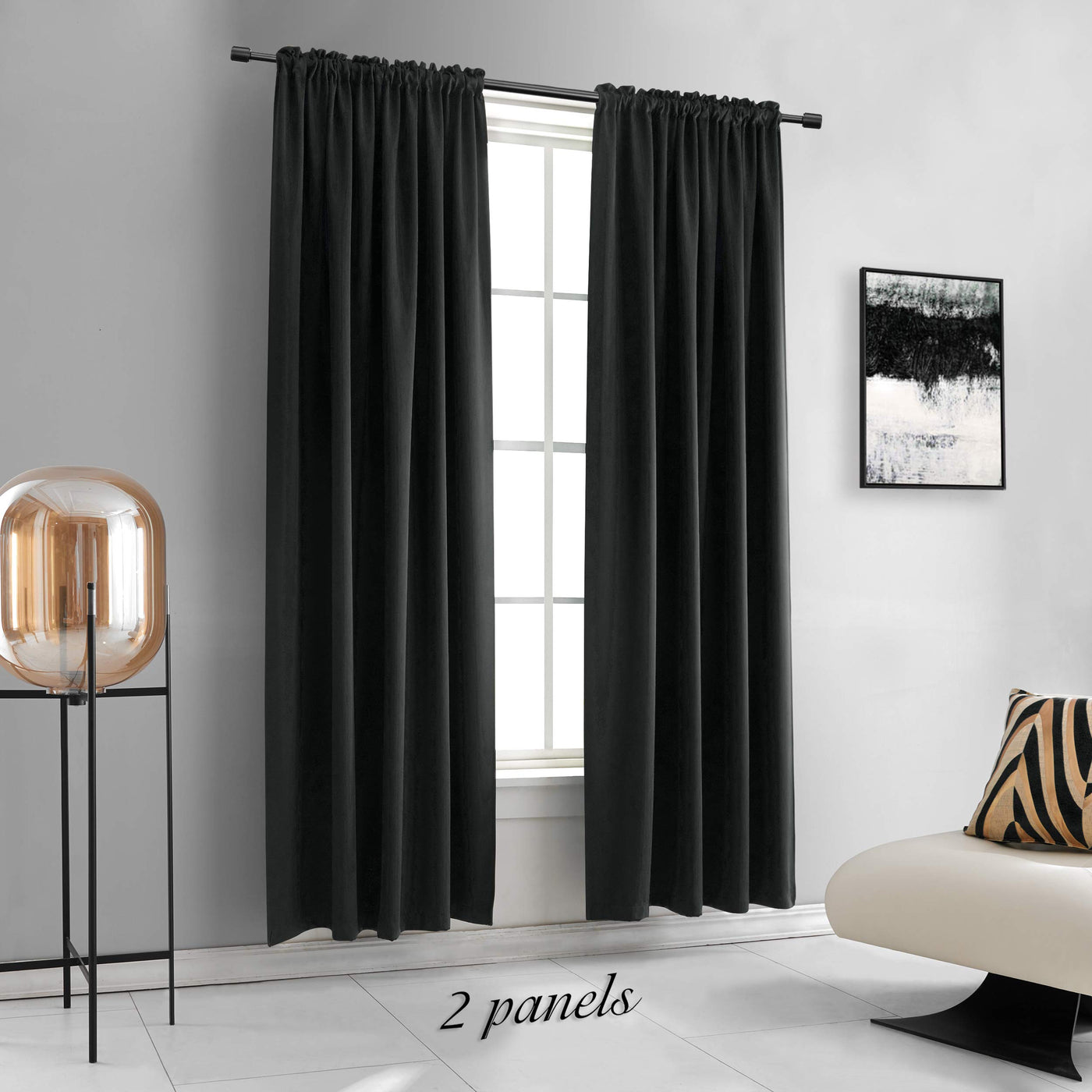 Donren 99% Blackout Curtains For Bedroom - Thermal Insulating Blackout Rod Pocket Drapes For Small Windows (52 X 84 Inches Long,Set Of 2 Panels,Black)