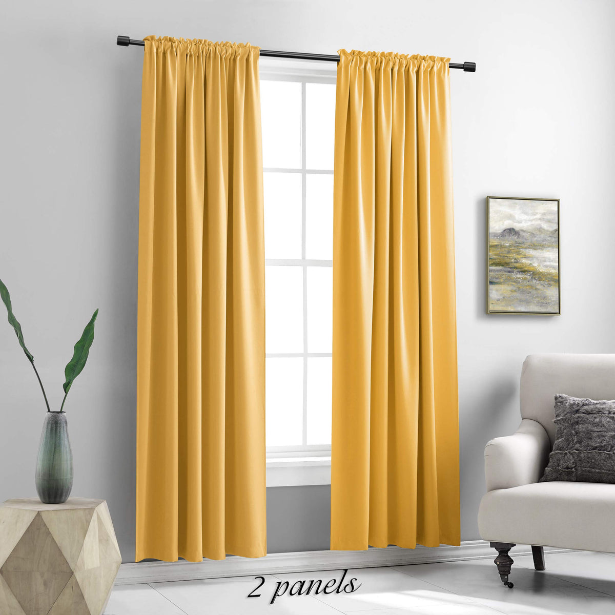 Donren Gold Yellow Blackout Thermal Insulated Curtain Panels For Bedroom - 2 Panels 84 Inch Length Curtains Room Darkening Rod Pocket Curtain Drapes(52 Wide X 84 Inches Long)