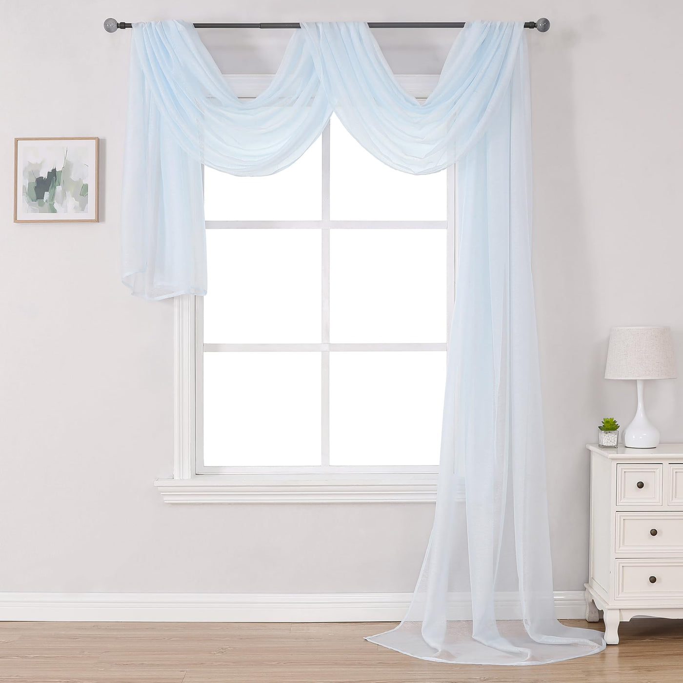 Donren Scarf Curtain For Window - Home Decoration Sheer Voile Scarf Valance For Wedding (1 Panel, W52 X L216, Light Blue)