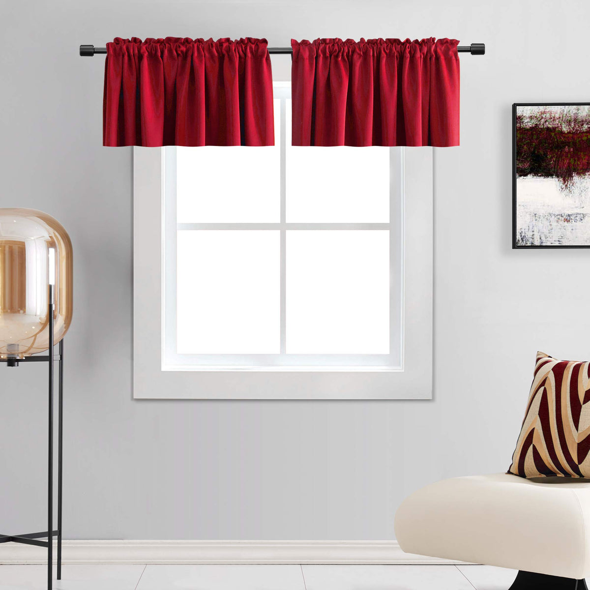 Donren True Red Valances For Bedroom - Room Darkening Window Curtain Valances With Rod Pocket (42 By 18 Inch,2 Panels)