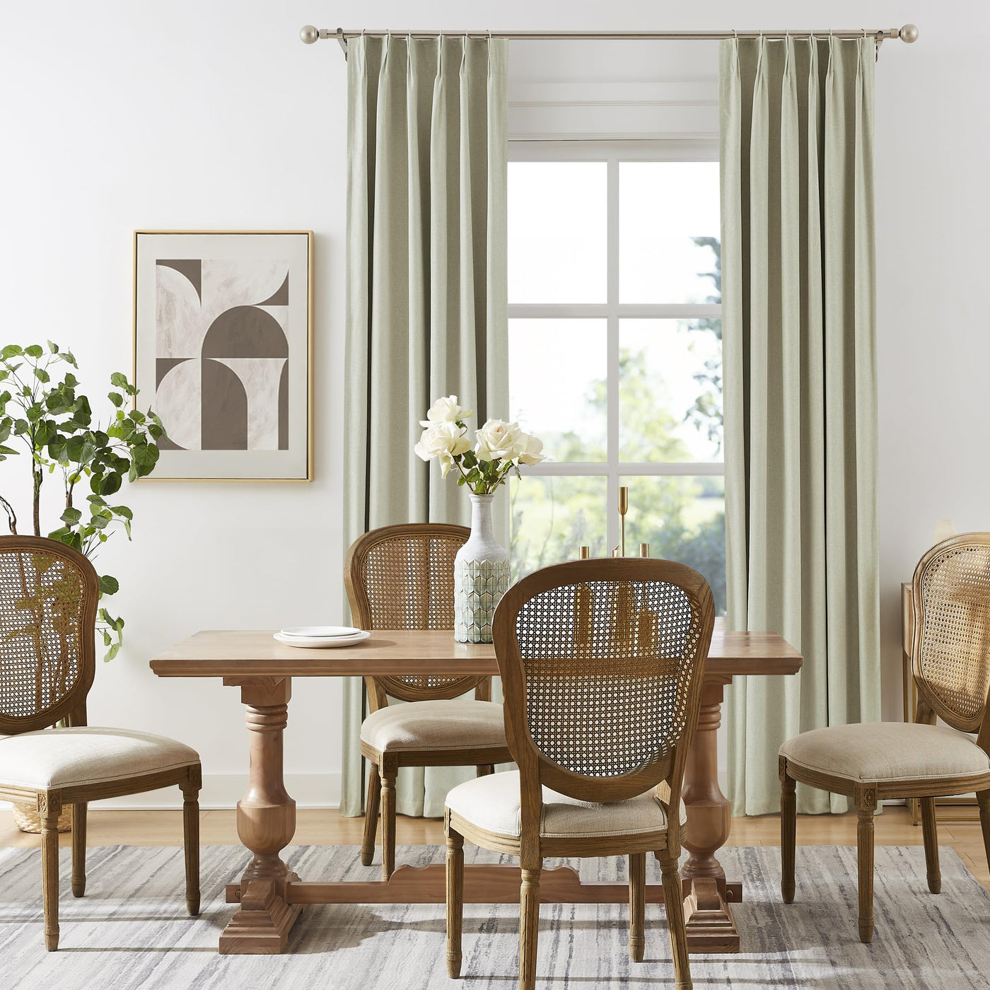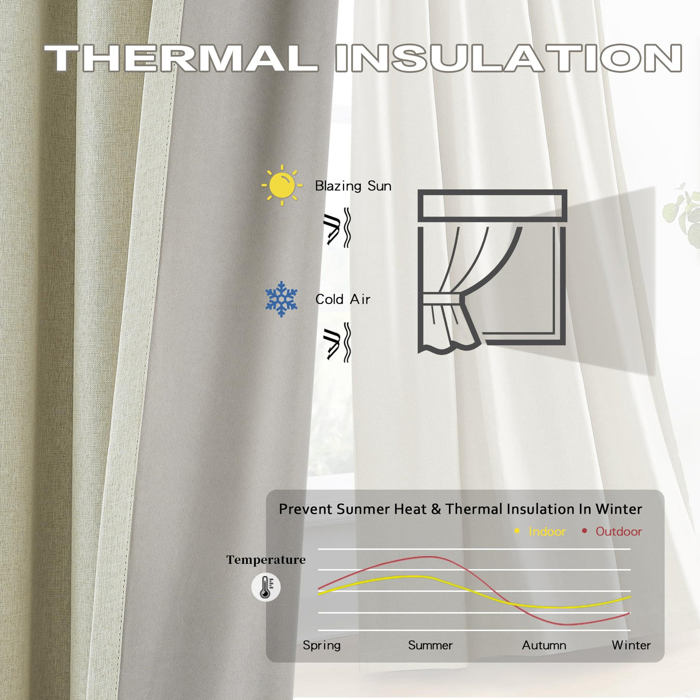 Dualife Blackout Pinch Pleated Curtains For Bedroom 95 Inch Length, Linen Blended Farmhouse 100% Blackout Thermal Insulated Back
