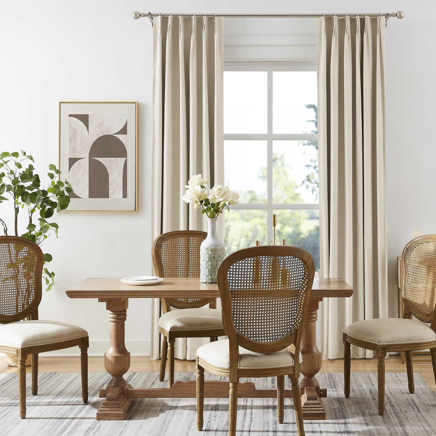 Q: How do I install the pinch pleated curtains?A: These curtains feature a back tab design and come with 12 hooks for easy installation. You can hang them using either back tabs or ring hooks (rings are not included) to suit your preference.