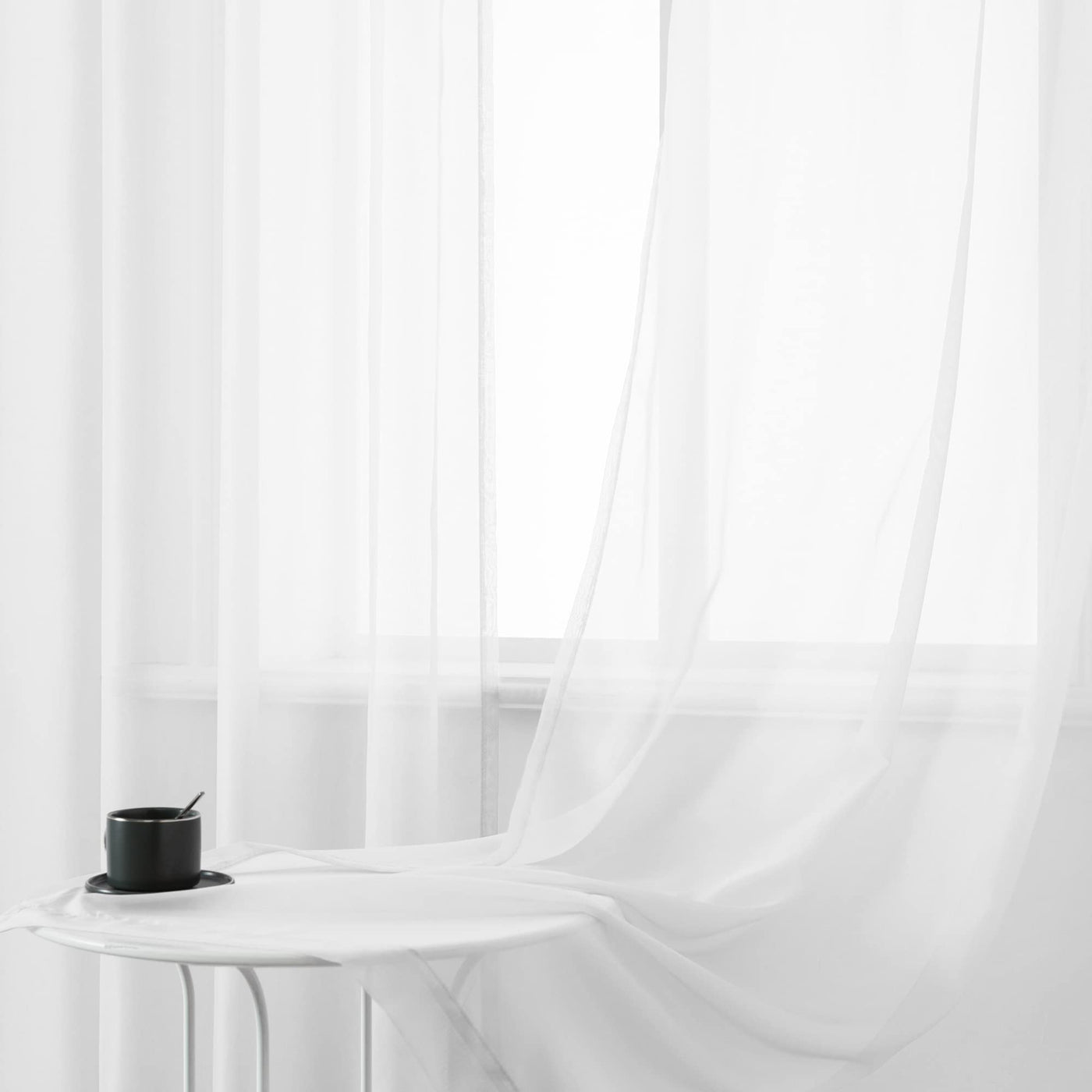 Q: What material are these sheer curtains made from?A: These curtains are made from durable and tear-resistant imported polyester, ensuring they are lightweight, safe, and environmentally friendly.