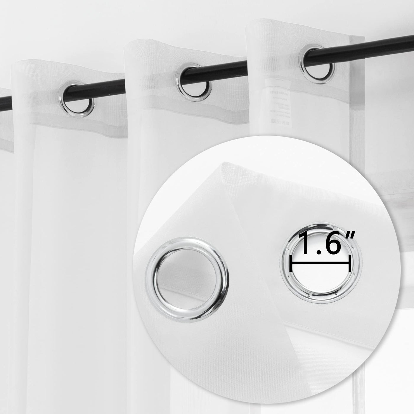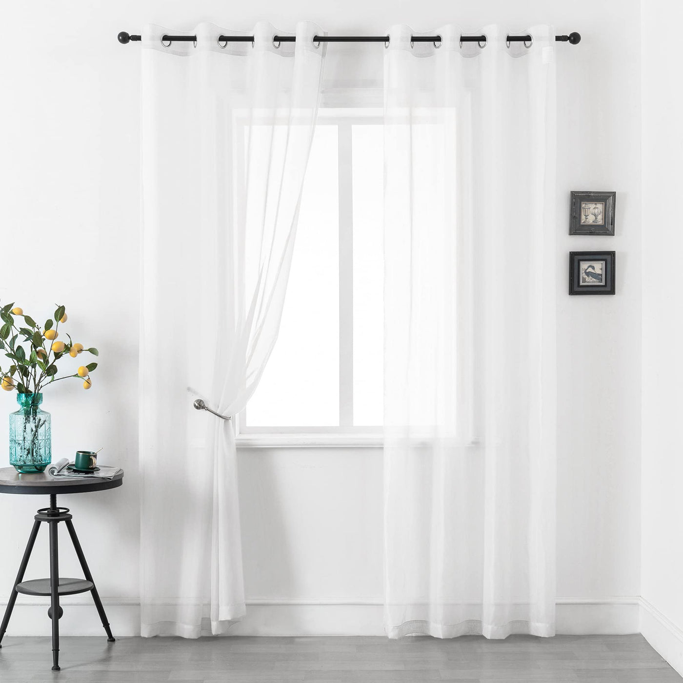 Dualife Bright White Sheer Curtains 84 Inches Long Set 2 Panels Grommet Look Semi Transparent Drape Tulle Gauze Voile Window She