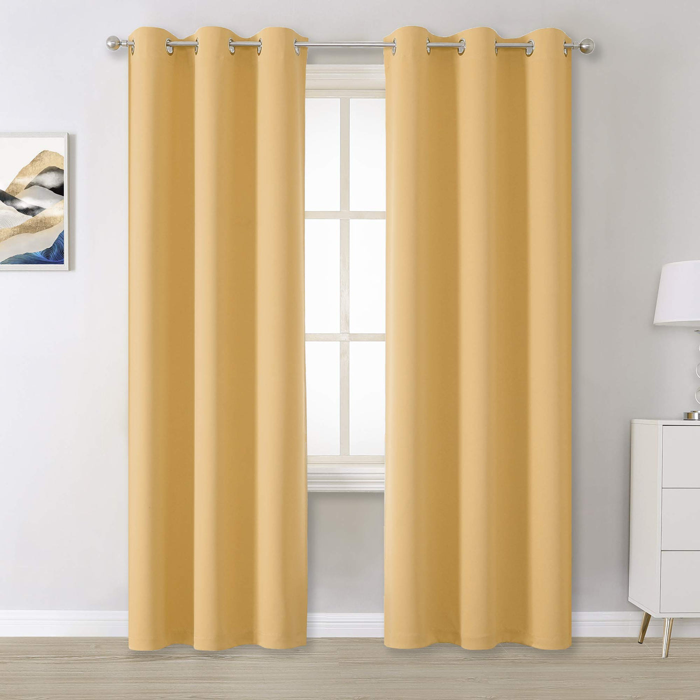 Dualife Butter Yellow Curtains For Bedroom Kids 84 Inches Long Room Darkening Solid Window Drapes For Living Room Thermal Insula