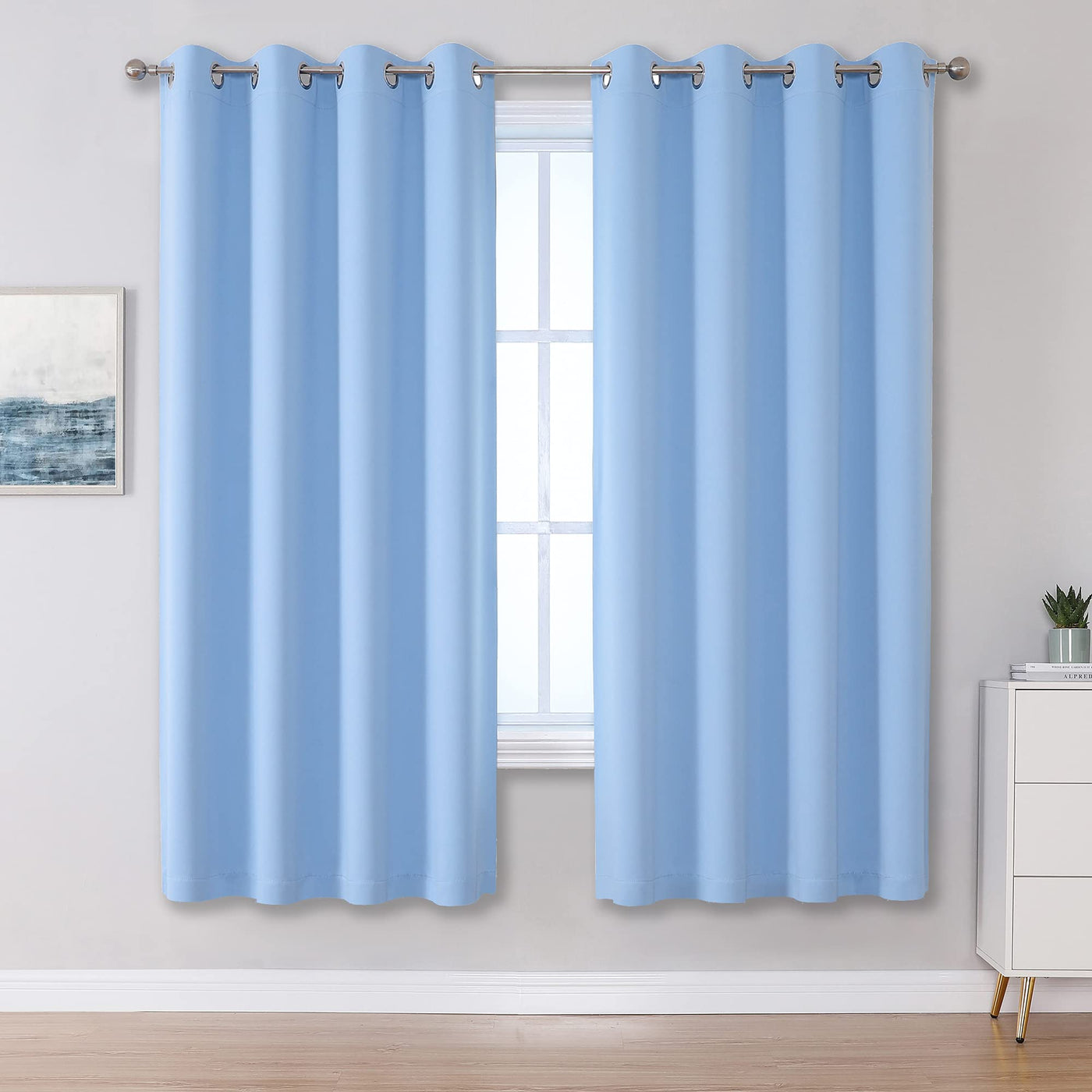 Dualife Cerulean Blue Blackout Curtain Panels Grommet Curtains For Living Room Solid Window Treatment Ring Top Room Darkening Be