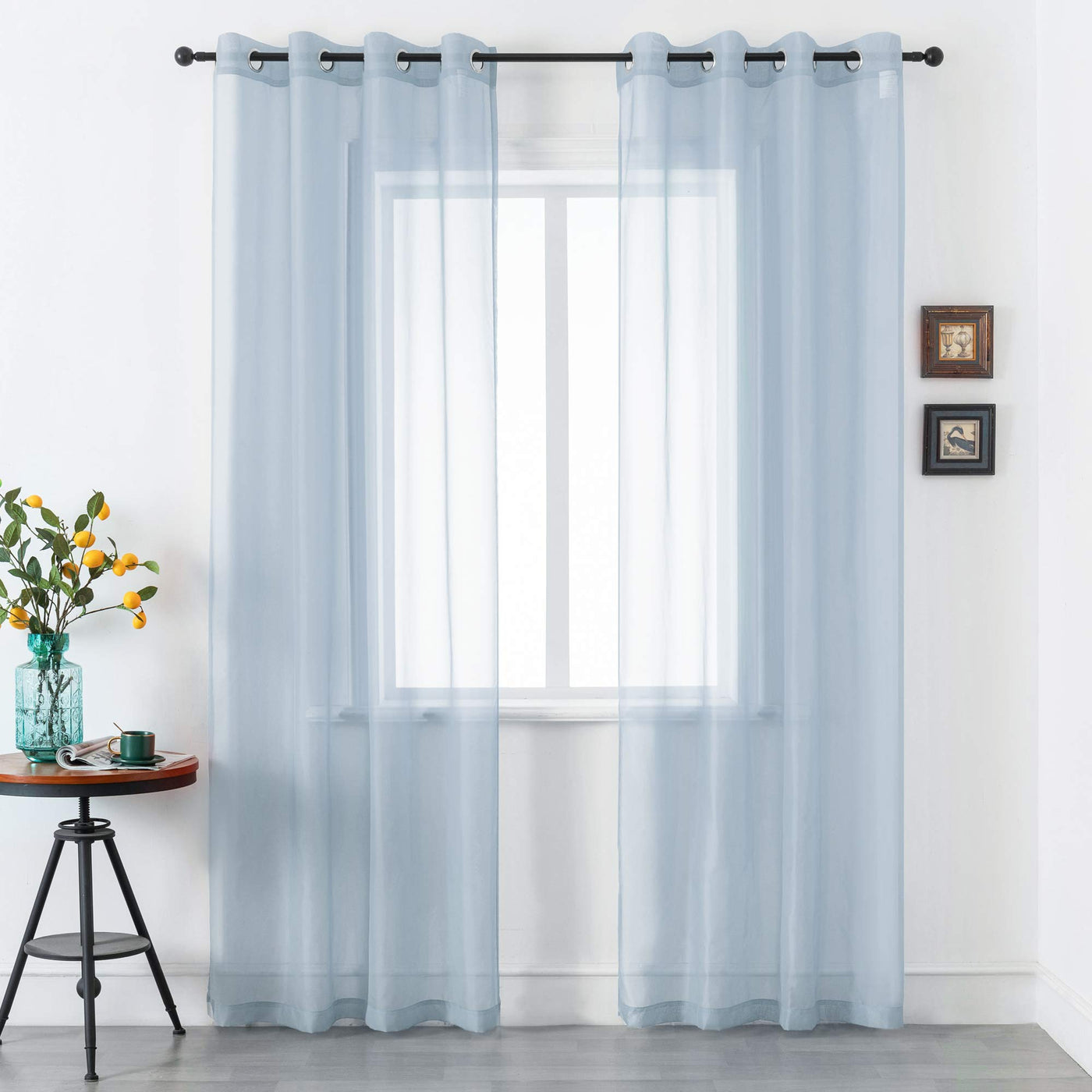 Dualife Dusty Blue Sheer Curtains 84 Inch Length For Living Room Decor Set Of 2 Panels Grommet Window Look Semi Sheer Transparen
