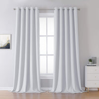 Dualife Greyish White Curtains 120 Inch Length Grommet Top Blackout Curtain Panels For Bedroom Window Treatment Room Darkening W