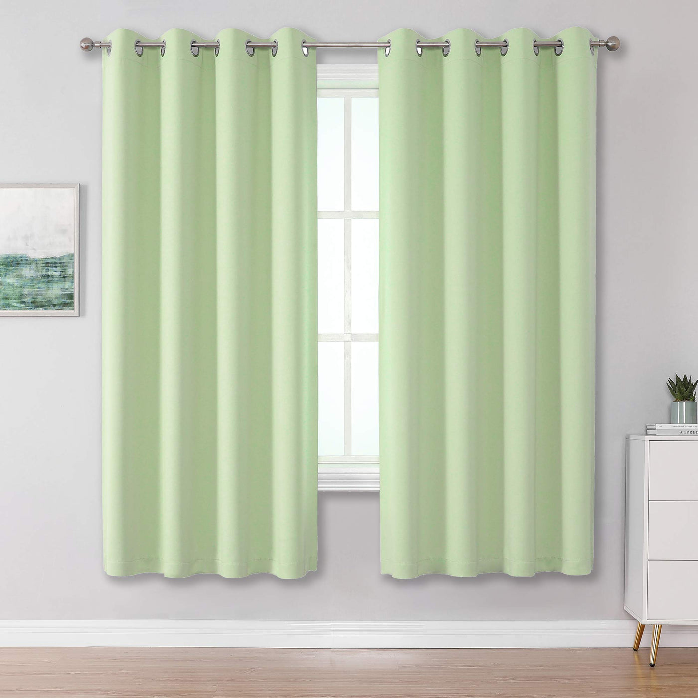 Dualife Light Green Blackout Curtain Panels/Drapes For Living Room 63 Inch Length Solid Energy Efficient Room Darkening Bedroom