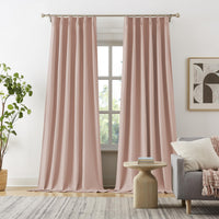 Q: Are these curtains effective in blocking light?A: Yes, these curtains are made from a rich linen blend fabric with a 100% blackout coating, ensuring maximum light blockage for a darker room environment.
