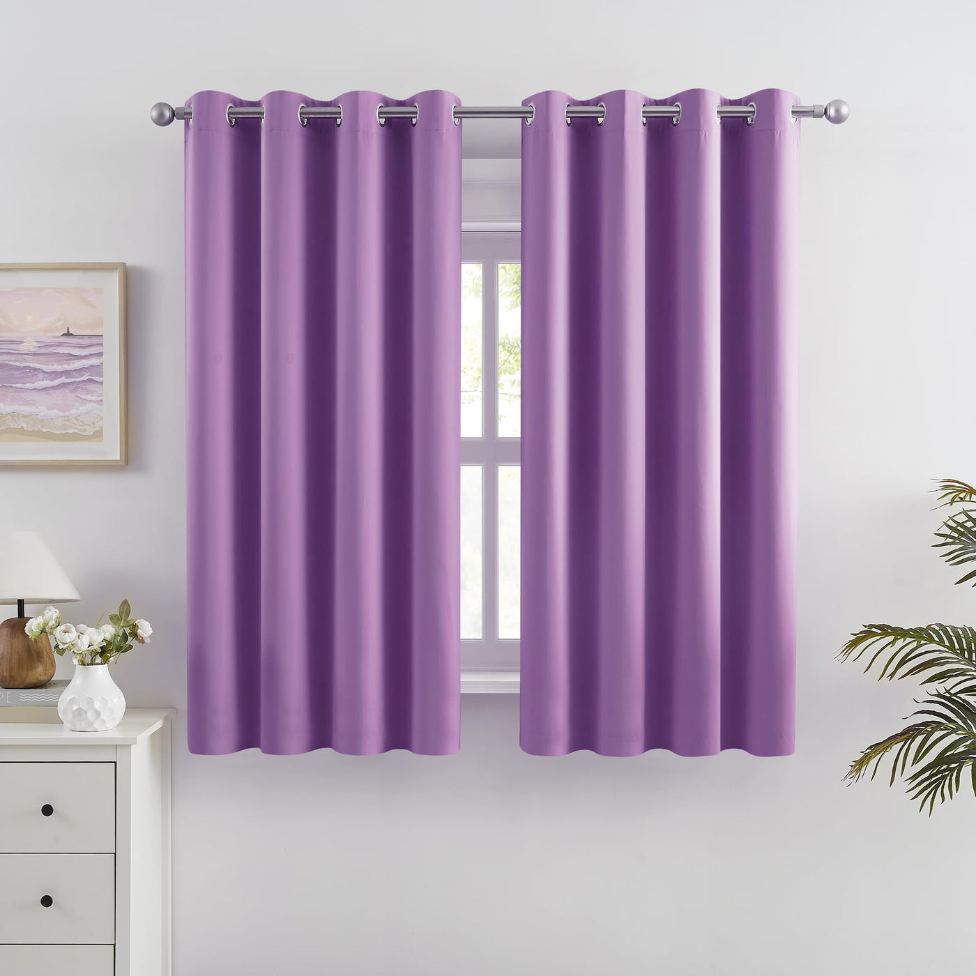 Dualife Purple Curtain Panels For Girls Room 45 Inch Length Solid Energy Efficient Room Darkening Bedroom Curtains For Short Win