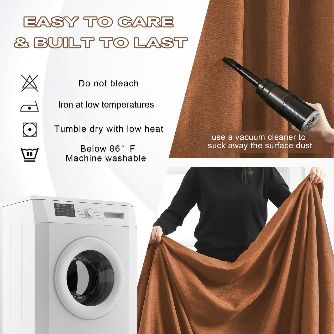 Q: How do I care for the DUALIFE blackout curtains?A: These curtains are easy to maintain; machine wash them in cold water on a gentle cycle. Avoid bleach and use a vacuum cleaner to remove dust. If needed, steam iron from the back at a low temperature.