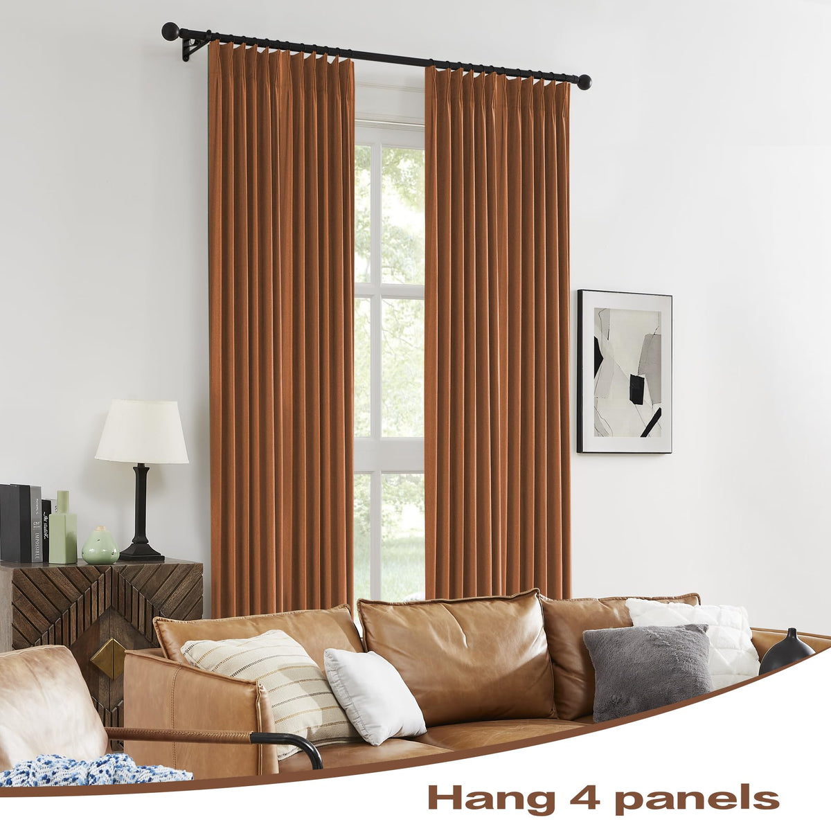 Dualife Rust Pinch Pleated Blackout Curtains 108 Inches Long, Boho Farmhouse Retro Totally Blackout Curtains Drapes With Hooks F