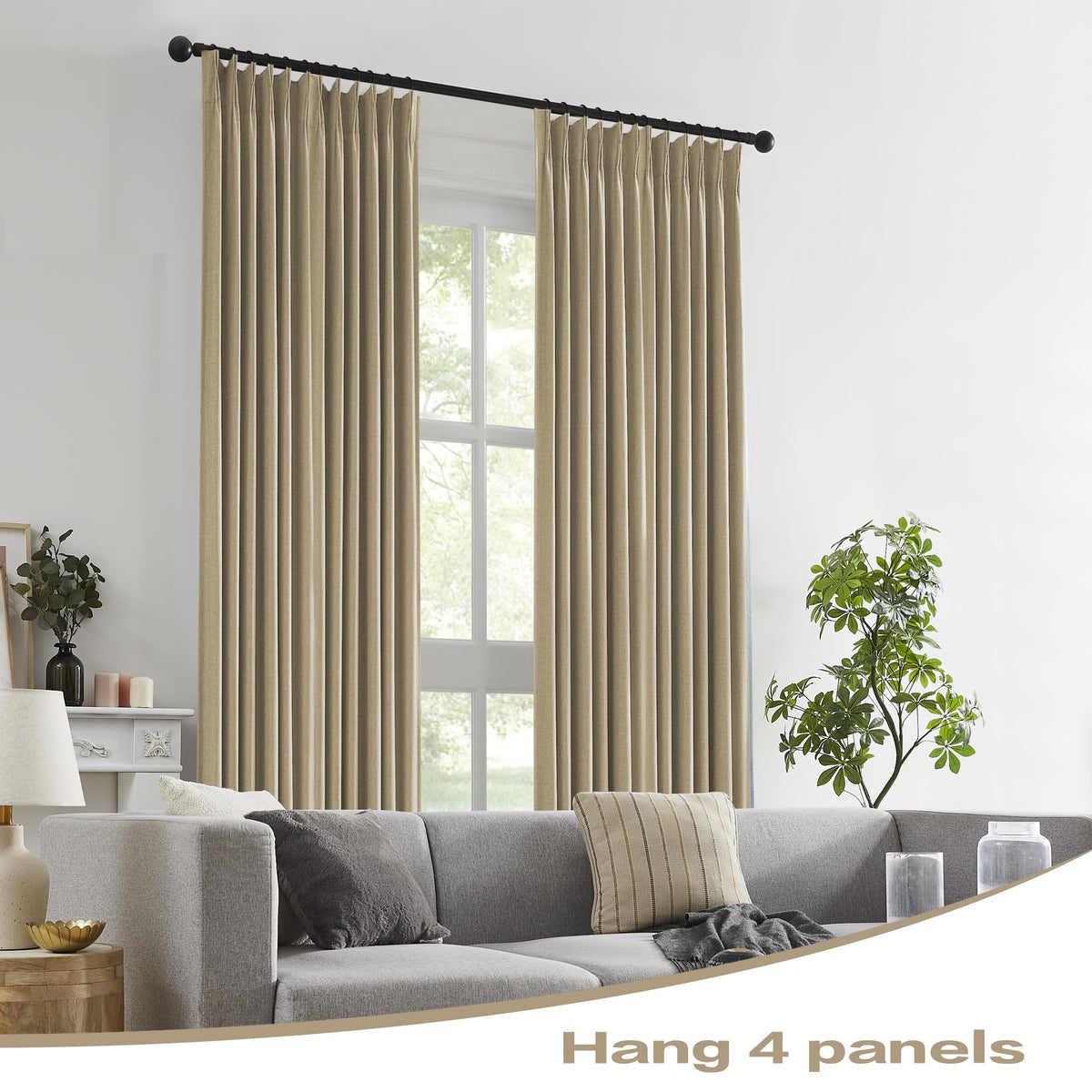 Dualife Taupe Blackout Pinch Pleated Curtains For Bedroom 144 Inch Length, Linen Blended Farmhouse 100% Blackout Thermal Insulat