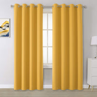 Dualife Yellow Curtains 84 Inches Long Blackout Curtain Panels For Bedroom Room Darkening Gold Solid Window Drapes For Living Ro