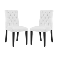 Duchess Dining Chair Set of 2 - Elegant Curvy Design, Tufted Button Back, Comfortable Foam Padding, Vinyl Upholstery, Wood Legs,