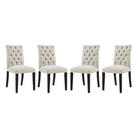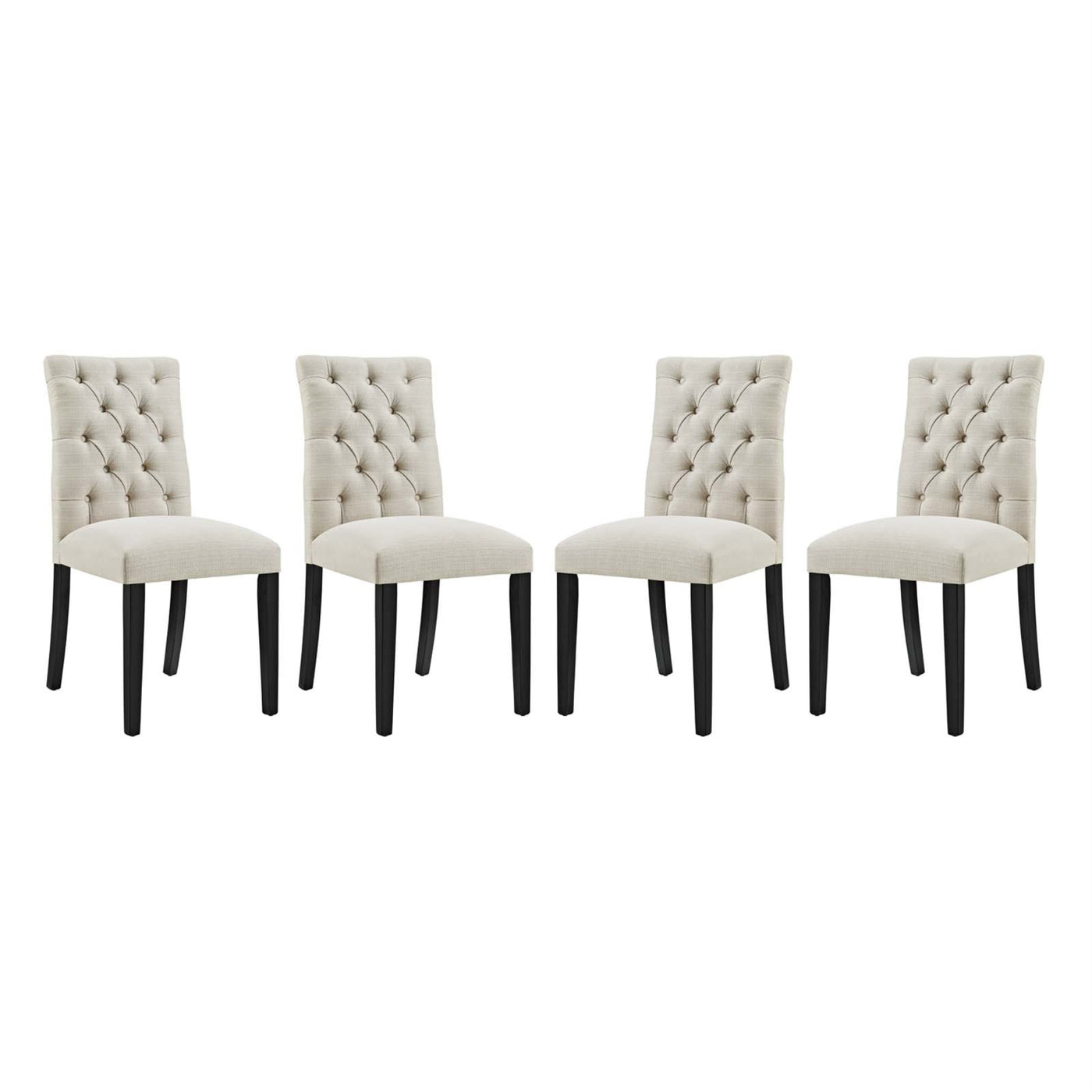 Duchess Dining Chair Set of 4 - Chic Curvy Form, Tufted Button Back, Fine Fabric Upholstery - Comfortable & Sophisticated - Beig