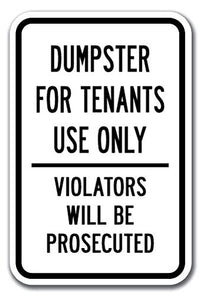 Dumpster For Tenants Use Only Violators Will Be Prosecuted Sign 12' X 18' Heavy Gauge Aluminum Signs