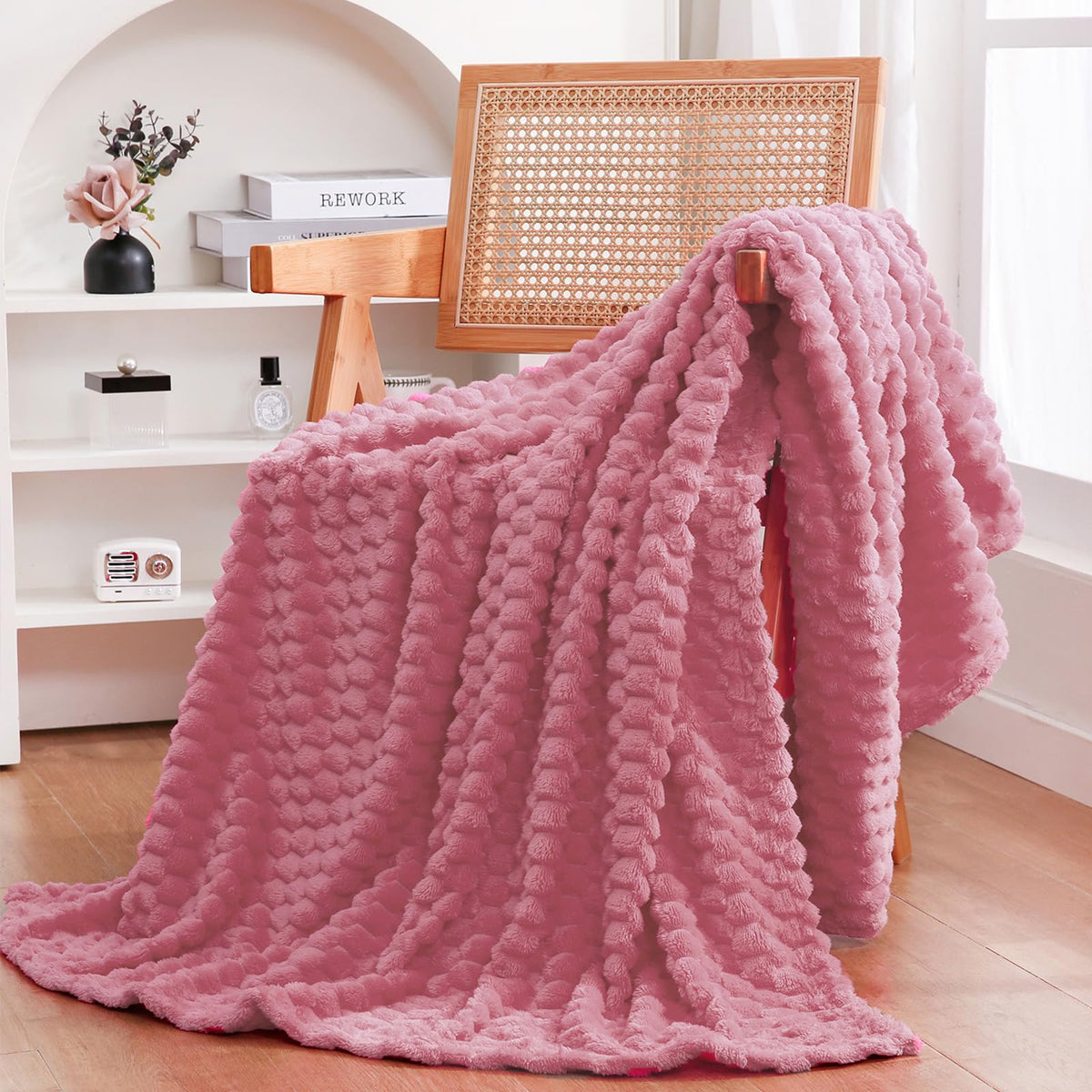 Dusty Pink Throw Blanket 60'' 80'' Inches Gifts For Mom Fuzzy 3D Jacquard Decorative Flannel Fleece Super Soft Plush Cozy Blank