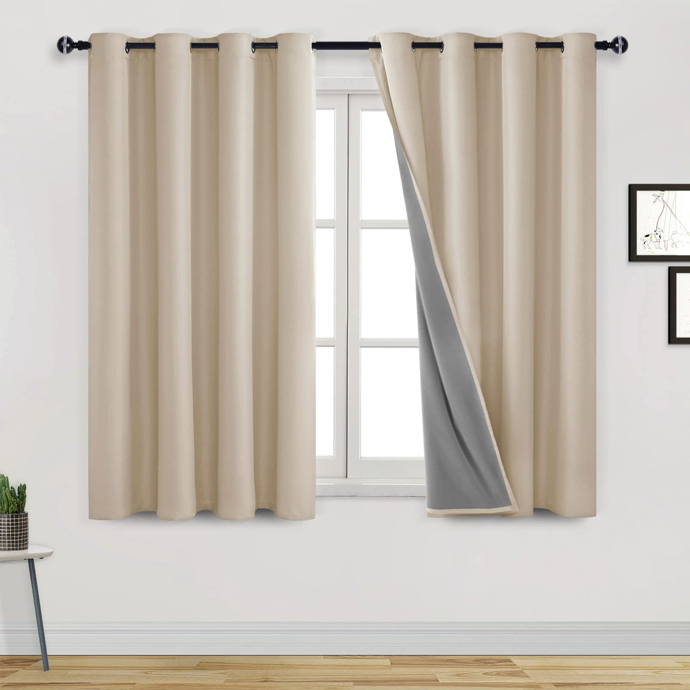 Dwcn 100% Blackout Curtain Short Kitchen Curtains & Drapes 2 Panels Noise Reducing Sun Light Blocking Thermal Insulated Sound Pr