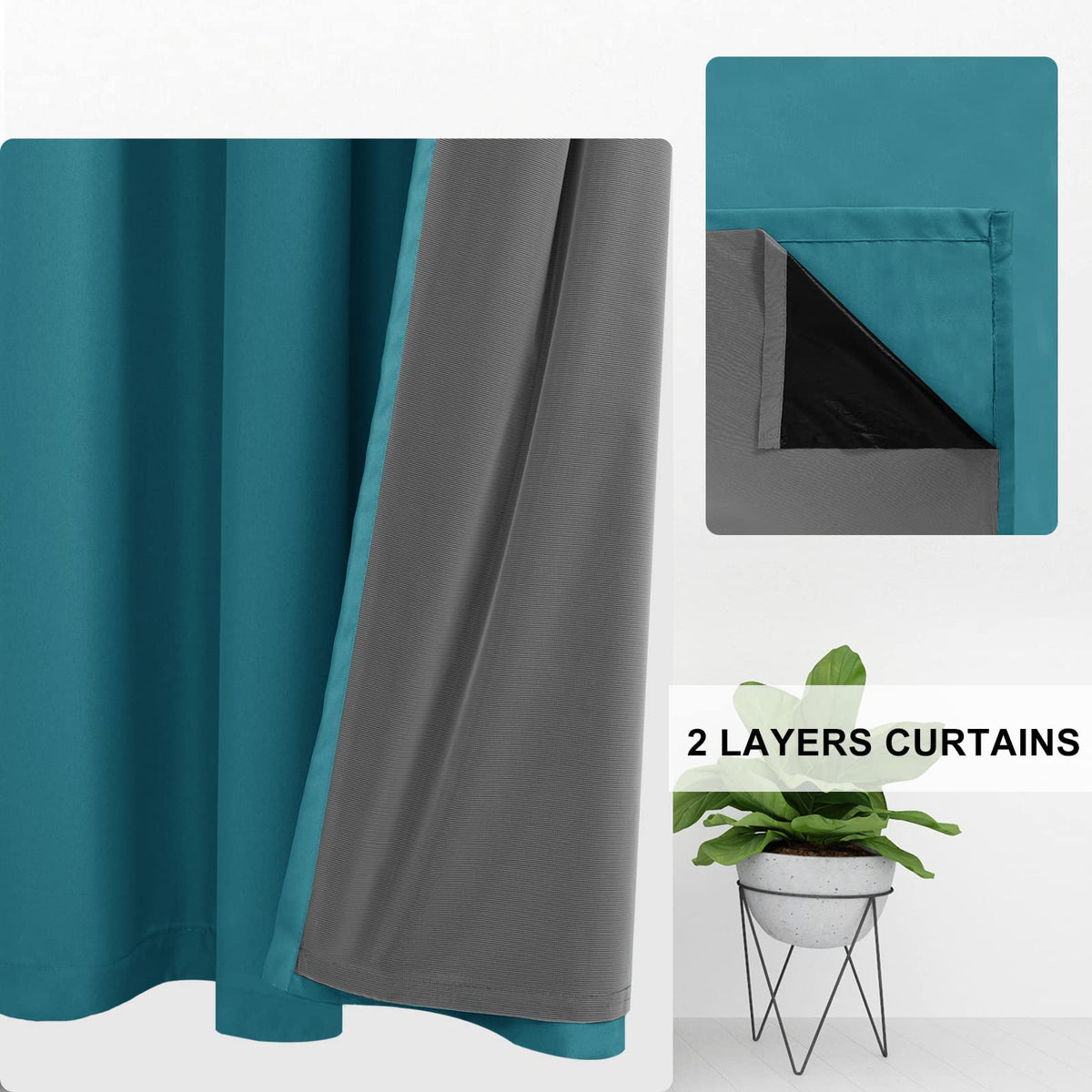 Q: How do these curtains provide a blackout effect?A: These curtains are designed with a 2-layer fabric system that effectively blocks all outside light, ensuring complete darkness in your room during both day and night.