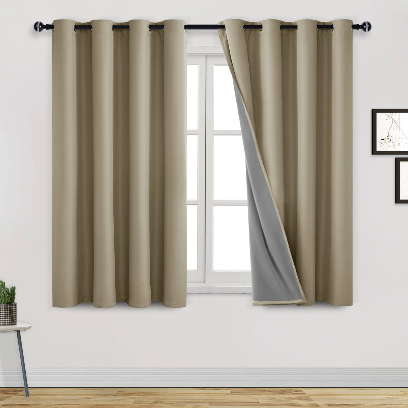 Dwcn 100% Blackout Curtains For Bedroom 54 Inches Long Thermal Insulated Home Decor 2 Panels With Black Liner For Living Room Th