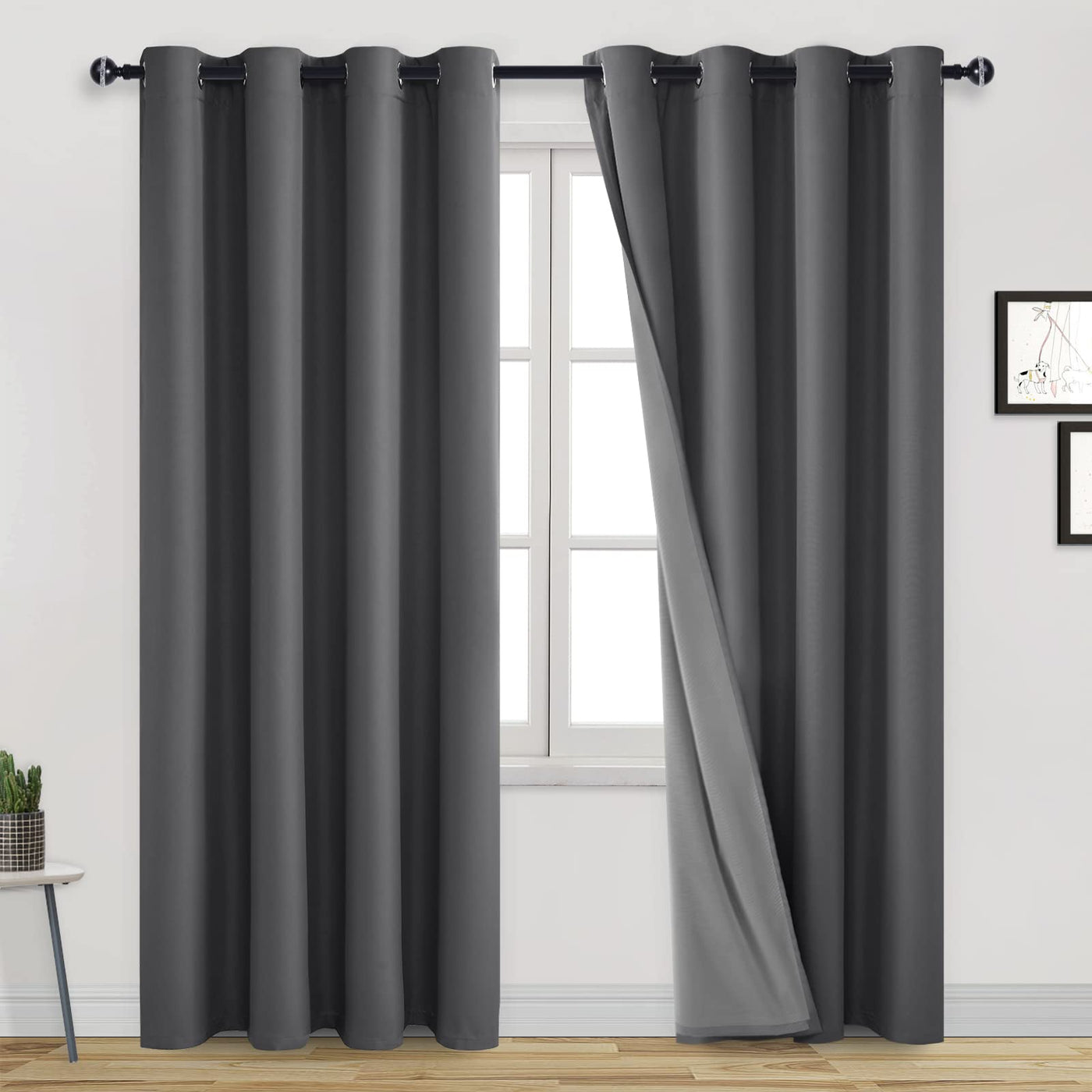 Dwcn 100% Dark Grey Blackout Curtains & Drapes 84 Inch Long 2 Panels For Bedroom Noise Reducing Curtain With Black Liner Thermal