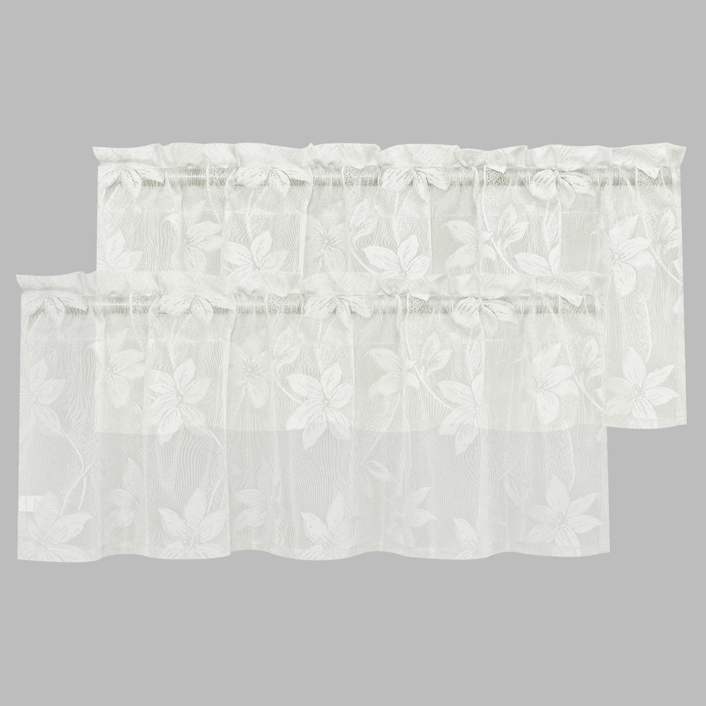 Dwcn 2 Pack Ivory White Floral Lace Valances For Kitchen - Rod Pocket Half Window Sheer Curtains For Small Window Living Room, 4