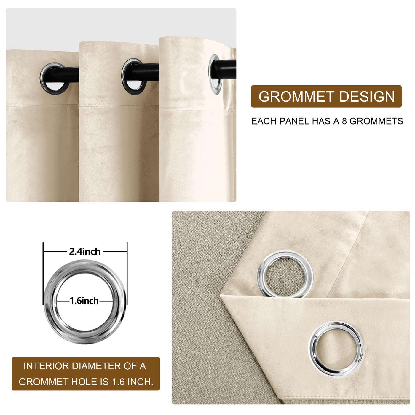 Q: What are the dimensions of the DWCN Beige Velvet Curtains?A: The DWCN Beige Velvet Curtains measure 52 inches in width and 96 inches in length for each panel, and the package includes 2 panels.
